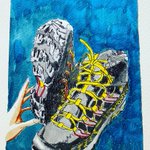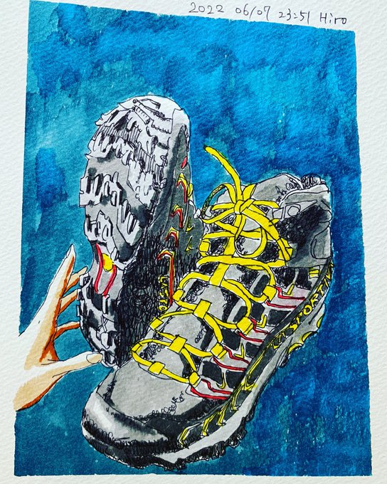 赤城山ナイトハイクに出発。自宅の鹿よけロープから息子を送り出す父。ゴングが聞こえたような気がした一瞬 #絵日記 #イラスト #ハイキング #ナイトハイク #picture_diary #illust #hiking #nighthike