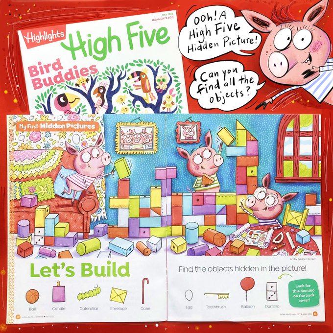 A #HighFivemagazine #hiddenpicture Can you find the objects? Yes? No? They're kinda easy!😉#threelittlepigs #kidlitart #kidlitillustration #childrensillustration #childrensillustrator #childrensbookillustration #illustrator #illustration #picturebookartist #magazineillustration