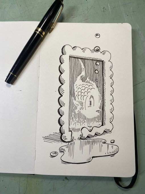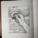 INKTOBER Day 4. I’ve been shown up by my son Alec. Here is my version of scallop (fish in frame) and his ( hand holding scallop). #inktober #inktober2022 #drawing #illustration #picturebookillustration #picturebookartist #lynnette_novak #blackandwhiteillustration