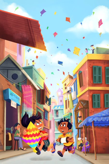 Lolu and Poly are running to the nearest terrace to start flying their kite amongst the hundreds of others! Will their kite survive? 🪁 #illustrationart #illustrationartists #picturebooks #picturebook #picturebookillustration #picturebookillustrator #kidlit #kidlitart