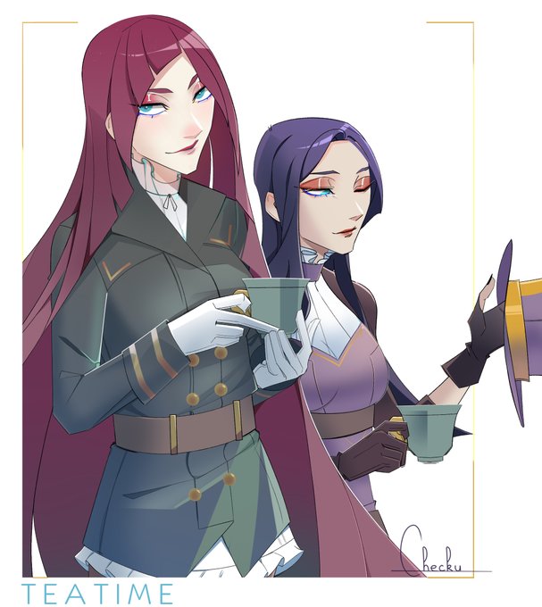 Tea time for Holly and Caitlyn 🫖 Commission by @versyxe 💜 #LeagueOfLegends #ArtOfLegends #Piltover