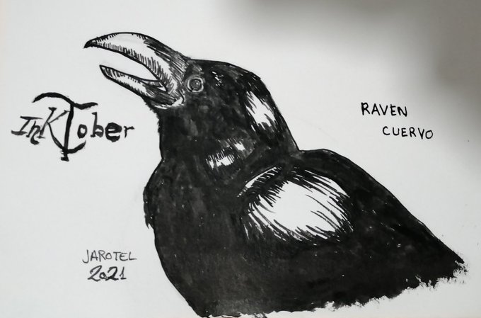 Día 5 de #Inktober2021 y toca Raven / Cuervo. #inktober2021raven #inktober2021day5 #inktoberchallenge #tintachina #plumilla #pincel #indianink