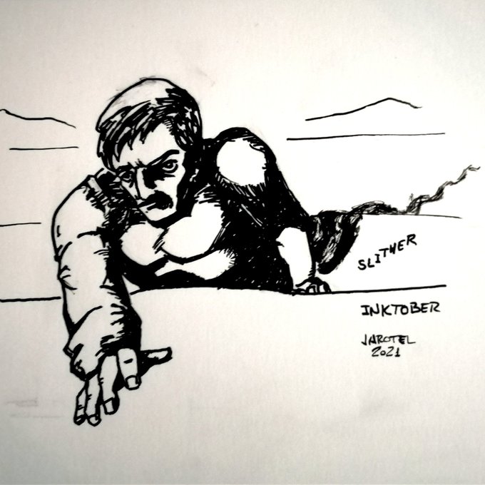 Penúltimo día de #Inktober2021. Slither / deslizar. #inktober2021slither #inktober2021day30 #inktoberchallenge #tintachina #plumilla #pincel #indianink #dippen #brush