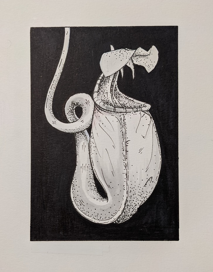 Day 19: Loop Fanged pitcher plant with a lil loop. #inktober #inktober2021 #inktoberday19 #inktoberloop #pitcherplant #inkdrawing