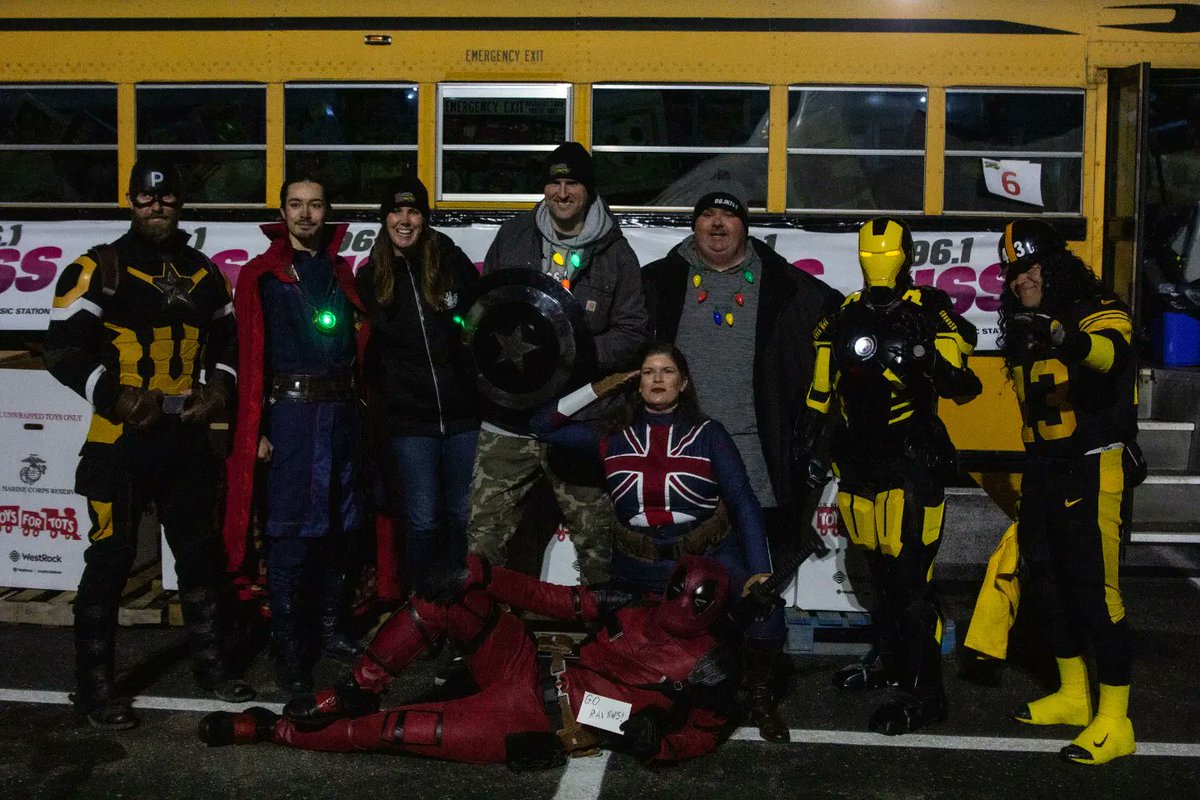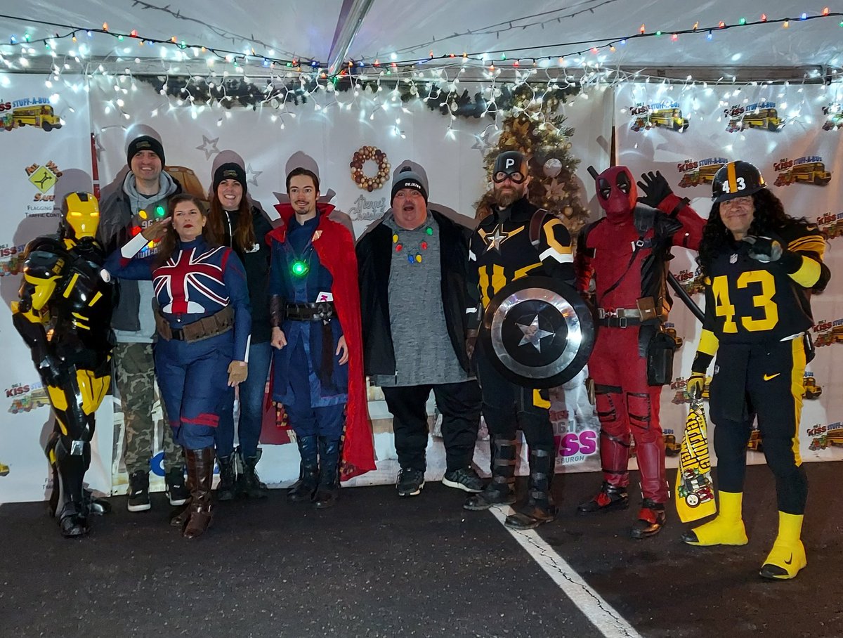 The #Pittsburgh #Avengers stopped by #StuffABus last night with a small toy drop! The crew at @961KISS are the best - make sure you help out this week if you can and donate to #ToysForTots, outside of Home Goods in Robinson! #cosplay @fsmikey @FSBigBob @tallcathy @allybearonair