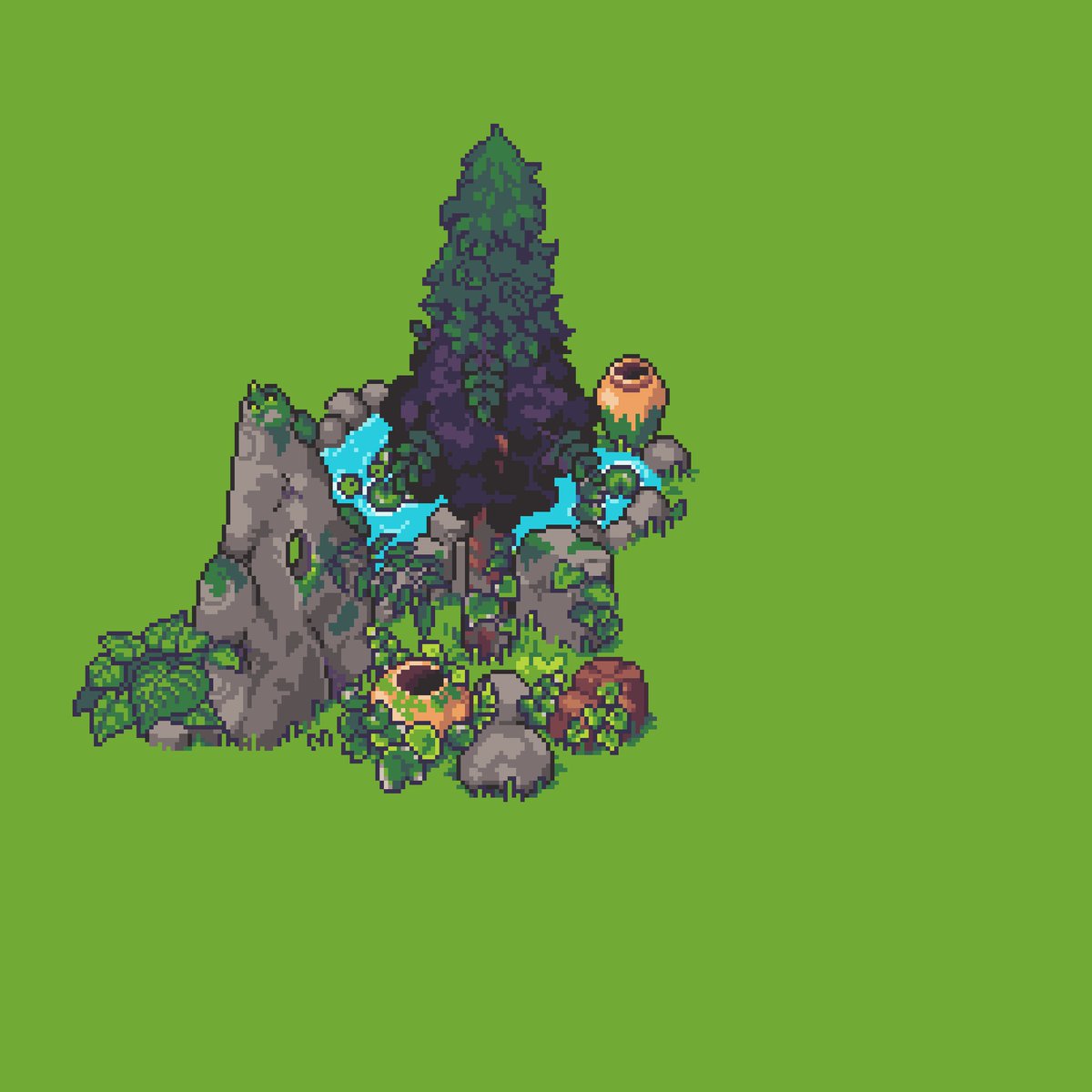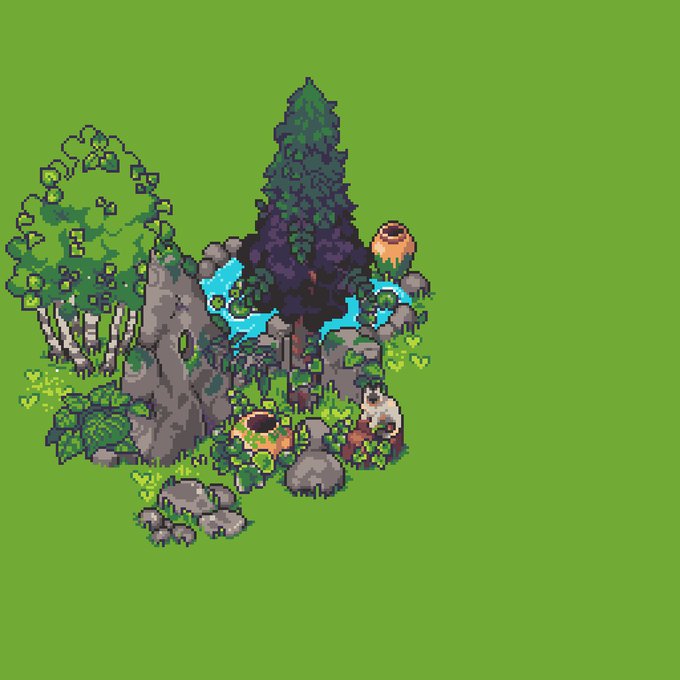 🌱~ | PEACEFUL PLACE | ~ 🌿 The thing is being complicated 😅 but hey, the show must go on! I will find a way😄 we’re not too far away from the end~~~ #WIP #pixel_dailies #pixelart #pixelartist #pixel_studio #nature #topdown #isometric