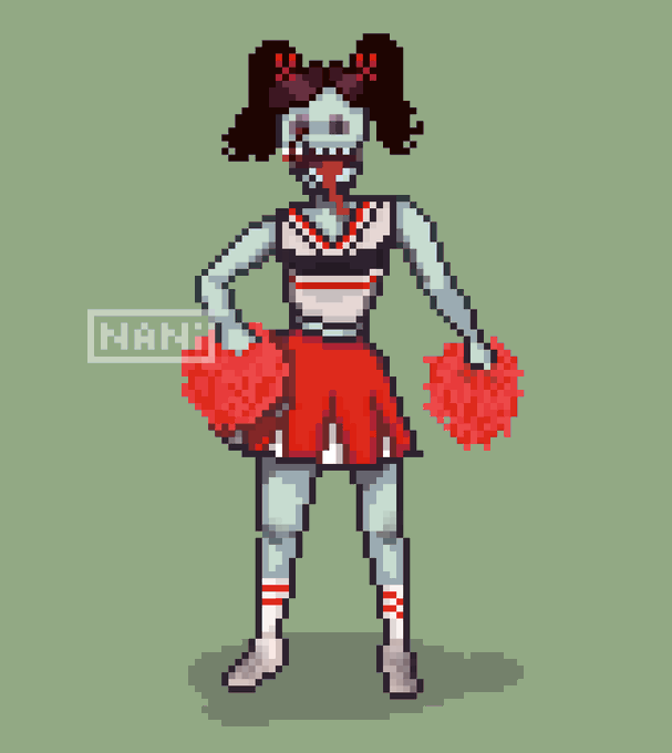 Day 27 of #pixeltober2022: Sport ❤️ She is in good shape to be a zombie cheerleader 😂 #aseprite #pixelart #cheerleader #zombie #procreate