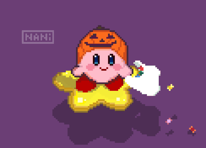 Day 29 of #pixeltober2022: Star ⭐ Pumpkin Kirby for this Halloween 🧡 #kirby #aseprite #pixelart #halloween