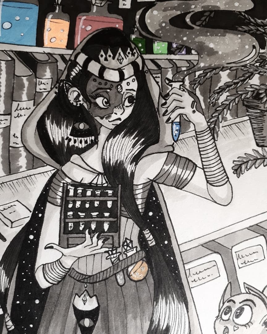 Day 15: 'Royal witch' Potion's princess #Inktober #Inktober2019 #Inktober2019day15 #witchtober #witchtober2019 #witchtober2019day15 #31Witches #potion #Pixies