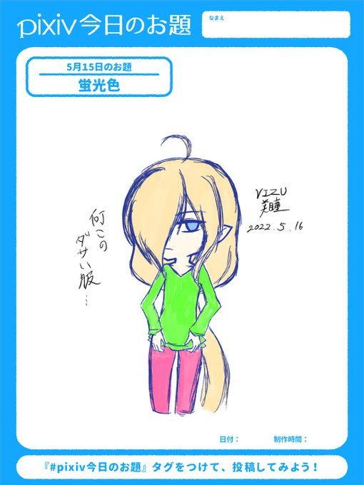 #Sketchドロー #蛍光色 #pixiv今日のお題だった #sensei #リドローOK #うちの子 うちの子 美瞳 飛鳥「美瞳はなんでも似合うんだな〜」 sketch.pixiv.net/items/68079203…