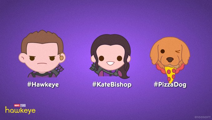 🏹 @Hawkeyeofficial premieres next Wednesday! Here's the brand new Hawkeye emojis I made that you can use riiiight noowwwww #Hawkeye #KateBishop #PizzaDog