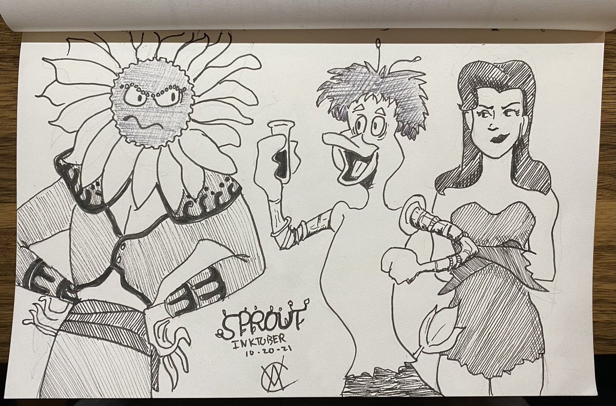 The #Inktober word for today was #Sprout. Here’s a trio of plant-based villains from my childhood cartoons. (I don’t think Ivy is all that pleased with her company.) #inktober2021 #plantbased #batman #thetick #darkwingduck