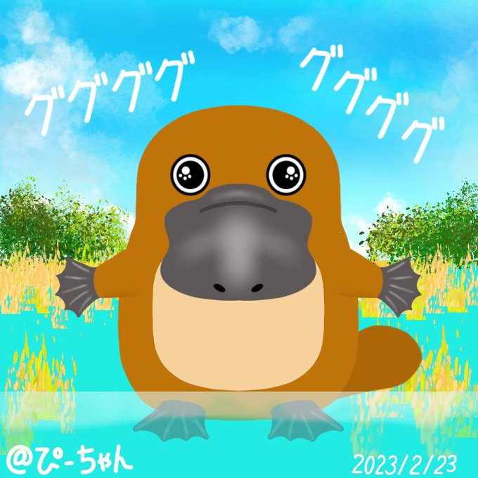 おはようございます😊 カモノハシさんです。 #みんなで楽しむTwitter展覧会 #キャラクター #イラスト #illustraion #characterdesign #ゆるキャラ #カモノハシ #platypus