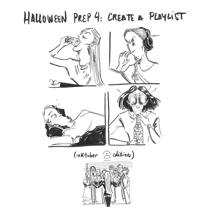 #Halloween prep 4: Create a #playlist! 💃Time to bring your inner #banshee and shake some souls with your voice. Enjoy #karaoke, or enchant a #fae with the beat of your #song. 🎧These are ones of my favorites to get into the atmosphere. #inktober2021 #halloween2021