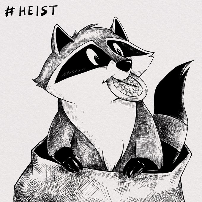Inktober 2022 day 22: #heist The cutest thief ever 🥰😇 Pocahontas little companion Meeko. #inktober2022 #inktober2022heist #pocahontas #disney #fanart #racoon #digitalart #procreate