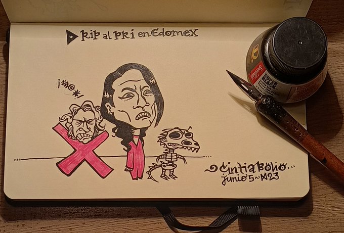 🔴RIP al PRI en #EdoMex2023 ¡Sí! Adiós al saqueo. #DelfinaGobernadora gana en un triunfo histórico de la ciudadanía con una candidata, mujer, maestra. ✌️✒️✔️ #CintiaBolio #CartónPolítico #Democracia #Mujeres #Poder #FraudeNo #YaCvan #MeteoritoTeam #5Junio2023