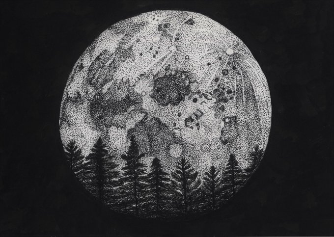 #Inktober Day 18 - Moon I don't know why I always go for pointilism and then wonder why the drawing is taking forever but least it paid off #inktober2021 #moon #pendrawing #illustration #pointilism #ArtistOnTwitter #illustration