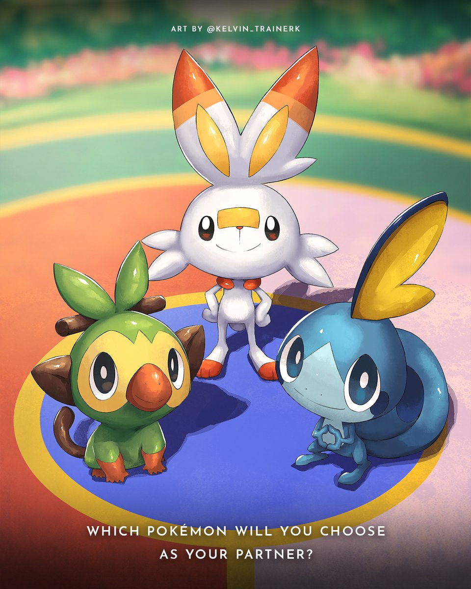 The Galar Starters! 💚🧡💙 As we are slowly entering Gen 9, let's show some appreciation to the Gen 8 starters! ☺️ Which Pokémon did you choose as your partner? Enjoy! RTs are much appreciated! 💛 #Pokemon #PokemonSwordShield