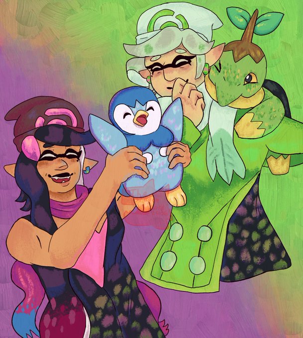 Marie and Callie with their Sinnoh starters :D #Splatoon3 #Splatoonfanart #splatoon #fanart #pokemon #pokemongen3 #pokemonplatinum