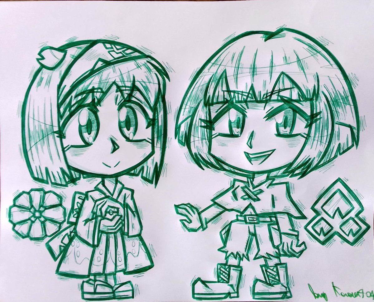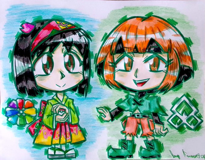 Gym Leader - Grass Type (Part 1) . . . 🌺 Erika and Gardenia 🌲 . . . #Erika #エリカ #Gardenia #ナタネ #PokemonRedandBlue #PokemonPlatinum #Fanart #TraditionalArt #Green #Chibi #Art