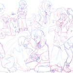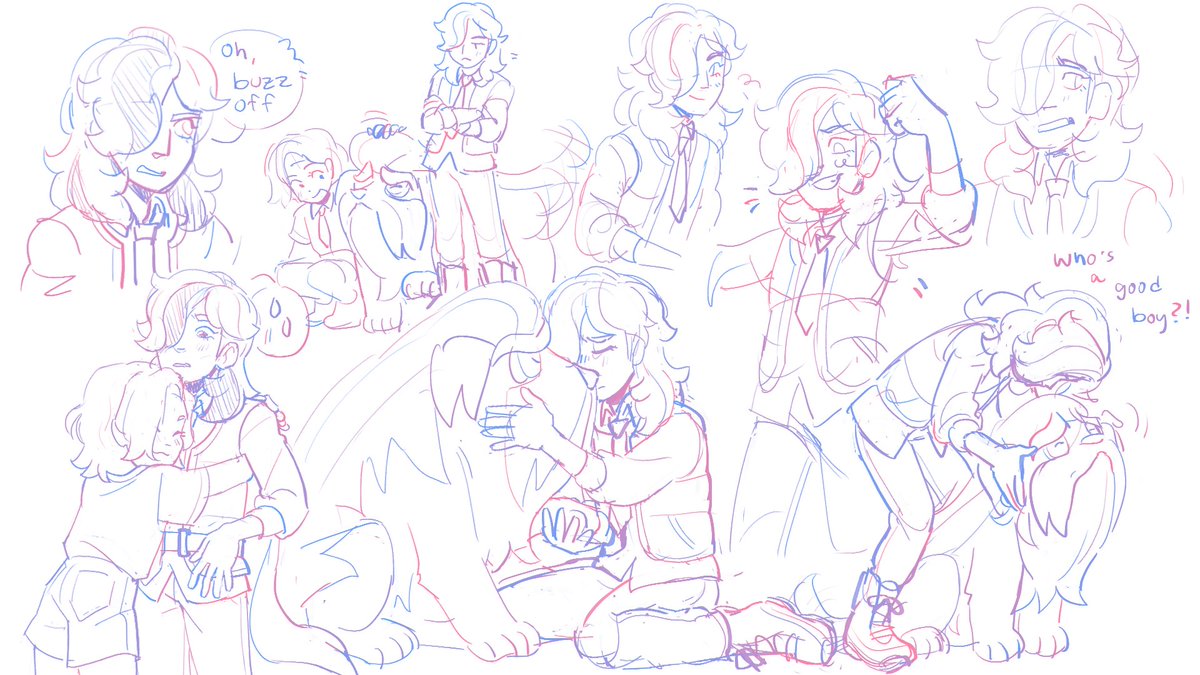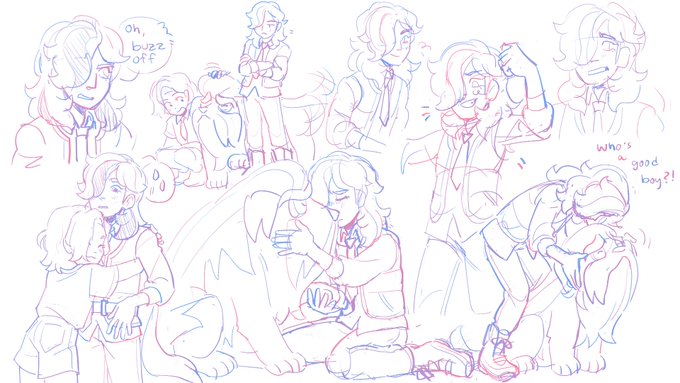 #pokemonsvspoilers POKEMON SPOILERS buncha lil doodles of arven + his mabosstiff andd my MC bc god i just love arven so much. his storyline makes me feel so important