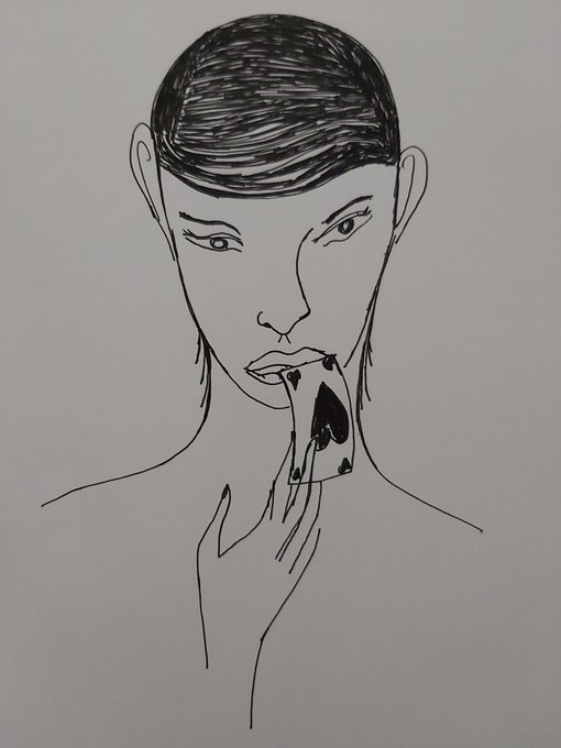 A closeup to my Twitter image profile ☺🖤🖤🖤 Pokerface #pokerface #inkpen #inkpenart #artistsontwitter #透明水彩 #イラスト #絵 #イラストレーション #カラフル