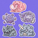 Day 23 Tung Koff Zing Don Rhy #inktober #drawtober #poketober #poketober2022 #crappymon #pokemon #lickitung #koffing #weezing #rhydon #rhyhorn