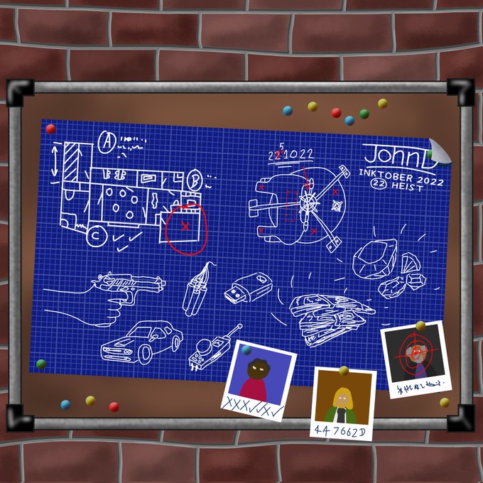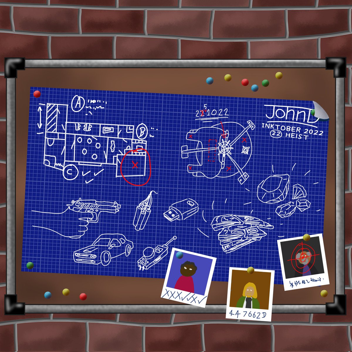 #inktober2022 - 22 - Heist #heist #heists #heistboard #corkboard #blueprint #vault #polaroid #plan #film #movie #crew #gta @inktober #inktober