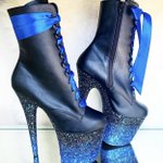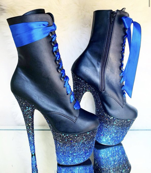 If Chun Li worked at The Klurb 💙💣⚔️ shopnightshadedesigns.com #nightshadedesigns #glitterheels #glittershoes #poledance #cosplay #Chunli
