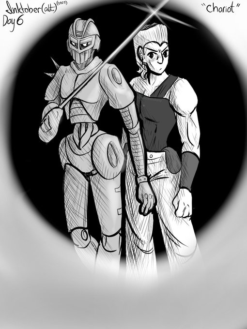 cmon the prompt had chariot I had to do it #inktober2022 #Inktober #inktober2022day6 #inktoberday6 #JoJosBizarreAdventure #stardustcrusaders #polnareff #silverchariot #jjba #jjbafanart