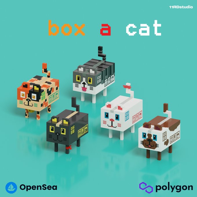 🔥" Box a Cat New drop"🔥 gang five cats. stray cat. They're adorable and in need of a warm place to call home.♥️ 46/200 polygon chain opensea.io/collection/box… #nft #NFTCommunity #NFTs #polygonchain #NFTdrops #nftcollectors #NFTartist #voxelart #pixelart