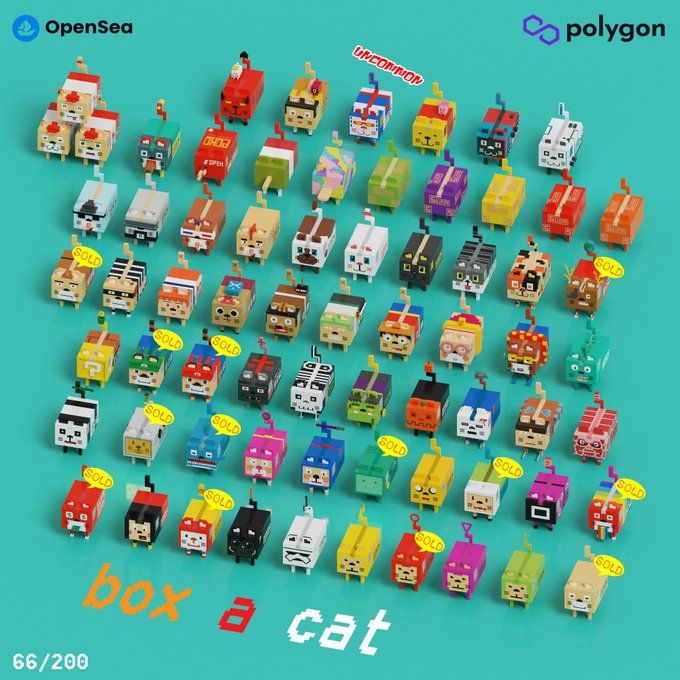 The world's largest box cat gang is the NFT world box cat gang. "Box a Cat" total 200. click here.. opensea.io/collection/box… #nft #NFTCommunity #NFTs #polygonchain #NFTdrops #nftcollectors #NFTartist #voxelart #pixelart