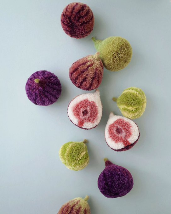 無花果研究週間もようやくフィナーレです。 スーパーで買った無花果を毛糸屋さんに持ちこんで、こっそり糸の色選びをしていたのはここだけのひみつ。 #pompom #trikotripompom