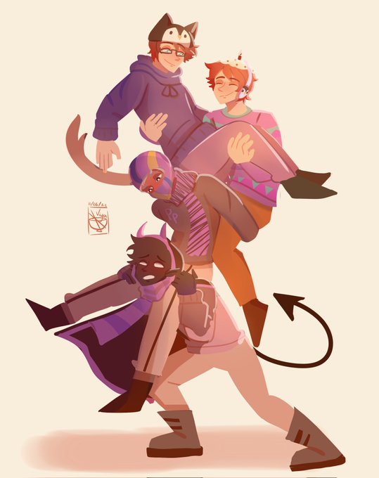 PURPLE PENGUINS WOOO (Outfits from @BadVelvetDoodle) #badboyhalofanart #ponkfanart #velvetiscakefanart #antfrostfanart #MCCFanart