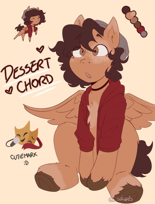HI I DREW MY PONYSONA :D her name is dessert chord bc dessert is almost spelled as desert and my name is sahara…… and chord bc i like music and her cutiemark is inspired by musicals/theater/singing and and andSHE’S FLUFFY #mlp #mylittlepony #mlpfanart #ponysona
