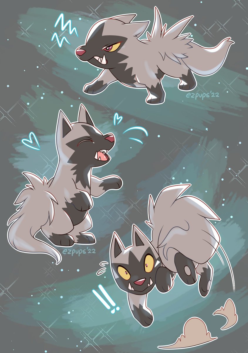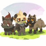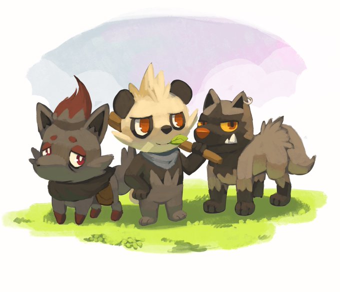 Bruno (Pancham), Jullienne (Poochyena) and Chiffon (Zorua), 3 troublemaking children characters of mine. Bruno is leadership, Jullienne is muscle and Chiffon is the brains. . . . . . . #Pokemon #ArtistOnTwitter #Zorua #Pancham #Poochyena #digitalart