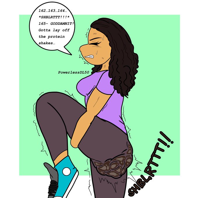 “Getting A Leg Up” Milani always loves to get ahead of the competition and pushing herself to the limit! 😮💨but while doing so she pushed her morning protein shake straight into the seat of her pants😅 #scat #soiling #messing #desperation #poop #poopypants #pantypoop #digitalart