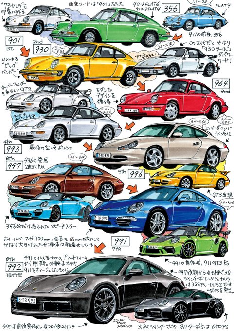 私的イラスト傑作選(227) ル・ボランで連載中の「車系譜MANDA-LA」。 1枚絵にクルマごとの系譜を詰め込み、テキストとともに歴史を紐解いています。 2021年1月号(2020/11/26発売)掲載の第7回は「ポルシェ911」でした。 バックナンバーでご覧になれます! fujisan.co.jp/product/2809/b… #porsche911