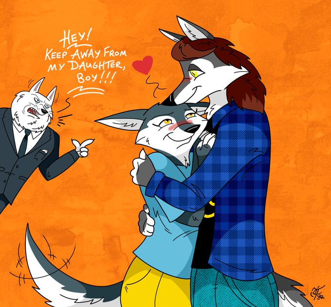 A "Sing 2"-themed commission for @Demon2000Dark - his OC, Codi Fenrir, and Porsha Crystal sharing a tender moment (while her dad disapproves) 🎥🎤🎶🐺💖😏 #Sing2 #PorshaCrystal #JimmyCrystal #Illumination #UniversalPictures #anthrowolves #ocart #loveydovey #fanart #commissionart