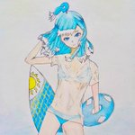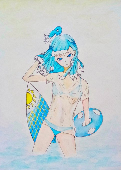 Kobokanaeru fanart ....... I know it's winter but yeah it doesn't hurt #art #draw #drawing #tradisionalart #postart #vtuber #KoboKanaeru #kobo #AeruSeni #kobokanaerufanart #hololive #hololiveID #hololiveidgen3 #fanart #originalfanart #swimsuit #beach #animestyle #artist