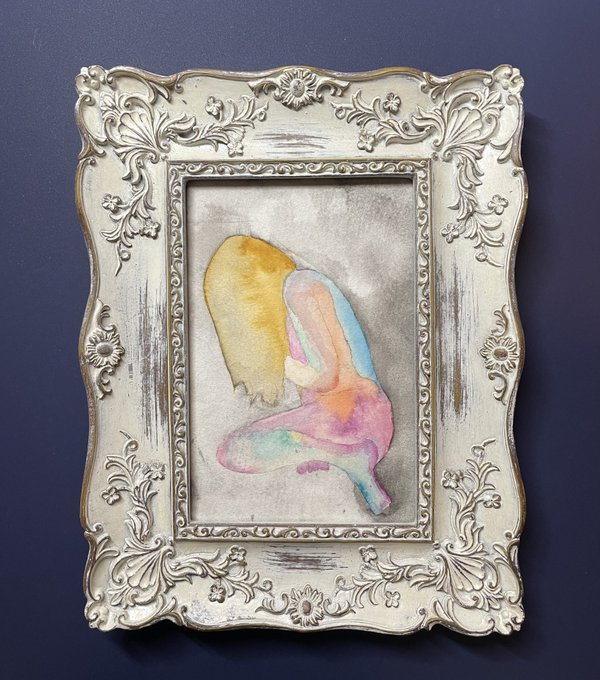 「たった一人で」 #鉛筆画 #水彩画 #鉛筆水彩画 #postcardsize #pencildrawing #watercolorpainting 額縁サイズ22.5×17.5cm 2023.April.22nd