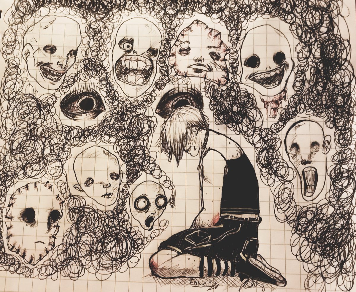 ⚠️ALGUNAS DE ESTAS ILUSTRACIONES PUEDEN SER GRÁFICAS O NO AGRADABLES PARA TODO PÚBLICO (SI ERES SENSIBLE A ESE TIPO DE CONTENIDO NO PROSIGAS<3)⚠️ ⛓ DIA 8 MIRAR👁 . . #inktober2021 #inkdrawing #rock #rockgirl #metal #emogirl #Dark #punk #punkrock #posting #oc #garabaros