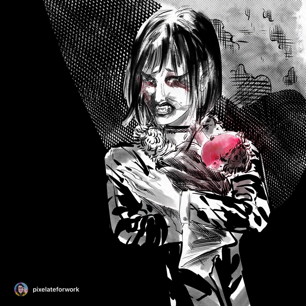 What are you first: a mother or a monster? Today's #dailypostpunk Check out my wares, traveler: pixelateforwork.threadless.com . . #goth #postpunk #daily #sketch #illustration #occult #inktober #digitalart #illustrator #punk #alternative #tradgoth #gothic #horror #monster #vampire #vtm