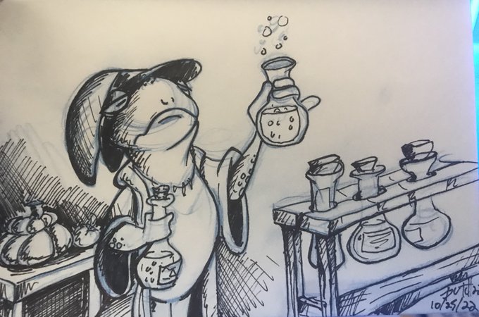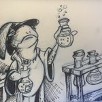 Frog 25. I am finally caught up. Six more days of this artistic plague of frogs. :) #Froggyfall #Inktober #Frogtober #Potion