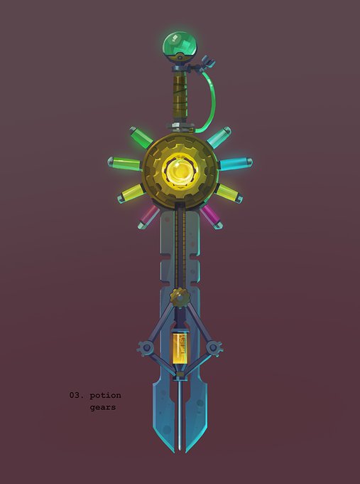 #swordtember2022 #swordtember Day 3, #potion #gears. A sword that mixes different elixirs on the go. Not sure about its promises of "painless administration".