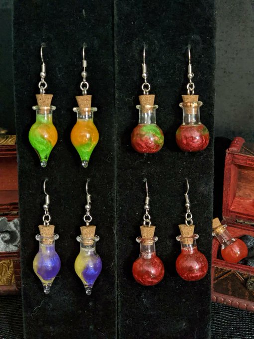 Been wondering what all of the potion bottles were for? These are just some of the items! #waitisover #potionbottles #potions #dungeonsanddragons #dndart #dnd #jewelry #jewelrydesign #etsyshop #resin #resinart