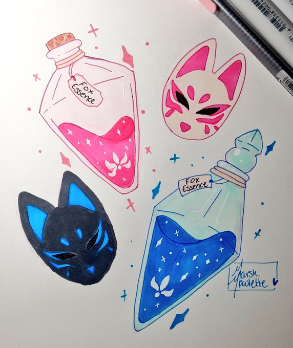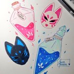 Day 4: Potions! Have Graves and Haven Fox Essence potions. #nahrinktober #inktober #foxdemon #hhoc #ocart #potionbottles