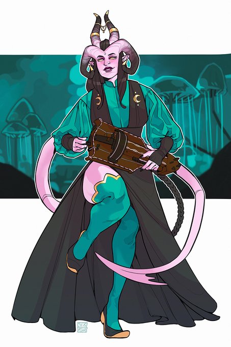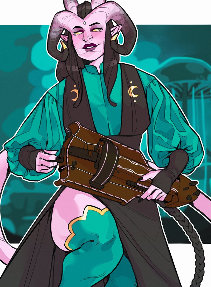 Acantha drawn for @/captainfishgirlart (instagram) as a part of #potlucksecretsatan2022 !! I ❤️ tiefling ladies 🌙🍄🎶