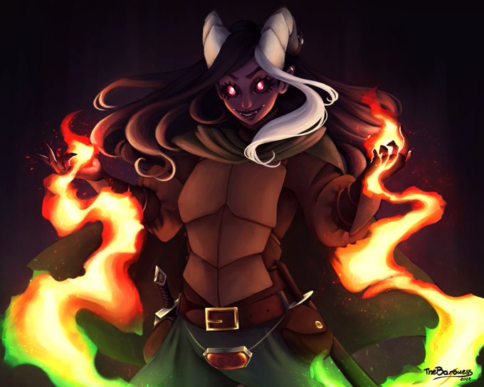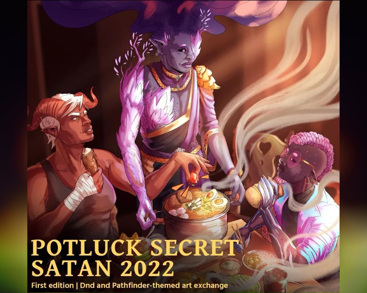 I took part in @leidensygdom's #potlucksecretsatan2022 event! I painted @LocalArtDeer's lovely tiefling Viridian for this! #dndart #fantasy #digitalart #illustration #characterdesign