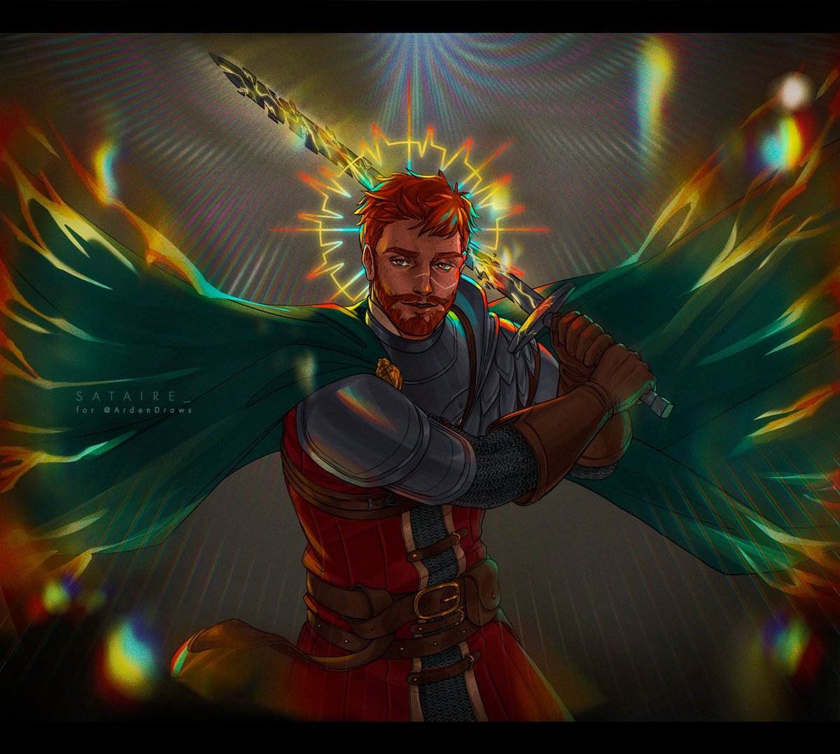 Rufus, the scourge aasimar, Oath of the Crown Paladin for @ArdenDraws ! It was an honor drawing such an awesome character! For this year’s #potlucksecretsatan2022 hosted by @leidensygdom !❤️Please go check them out and all the participating talented artists! #dnd #dndart